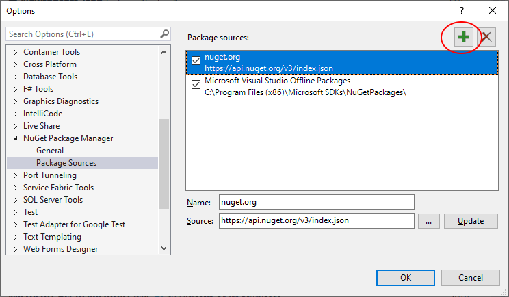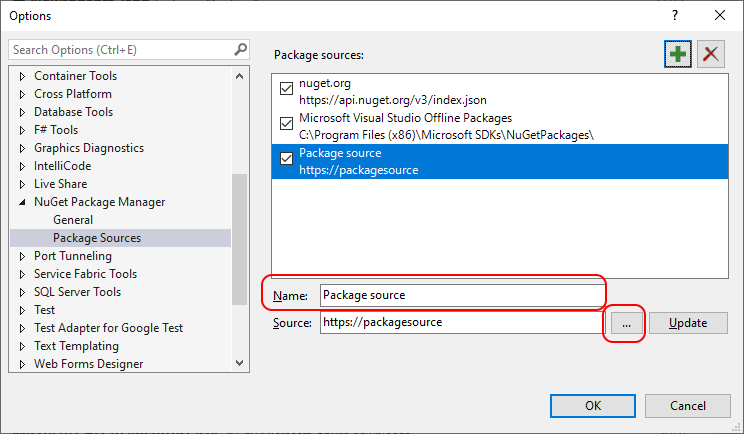 | • | By default the NuGet Package Manager will browse packages available on the nuget.org server; although trial versions of our NuGet packages are available inside nuget.org, it's recommended using packages available inside the folder in which you installed any of our components: the default folder is "\Program Files\MultiMedia Soft" so you need to set the mentioned folder as a packages source through the NuGet Package Manager settings |