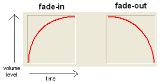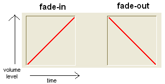 The volume fading implemented by this method applies to the beginning (fade-in) or to the end (fade-out) of the sound file's audio stream and only for sound files items (doesn't apply to Text-To-Speech items).