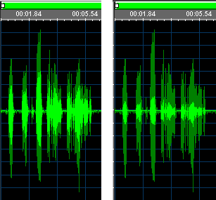 Factor of gradient intensity of the waveform line. This value can range from 0 to 100 with a default value of 50. Values outside of this range will be automatically capped to the nearest valid value. On the screenshot below you can appreciate the difference between the default value 50 (on the left) and a value of 20 (on the right):