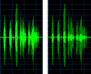Factor of gradient intensity of the waveform line. This value can range from 0 to 100 with a default value of 50. Values outside of this range will be automatically capped to the nearest valid value. On the screenshot below you can appreciate the difference between the default value 50 (on the left) and a value of 20 (on the right):