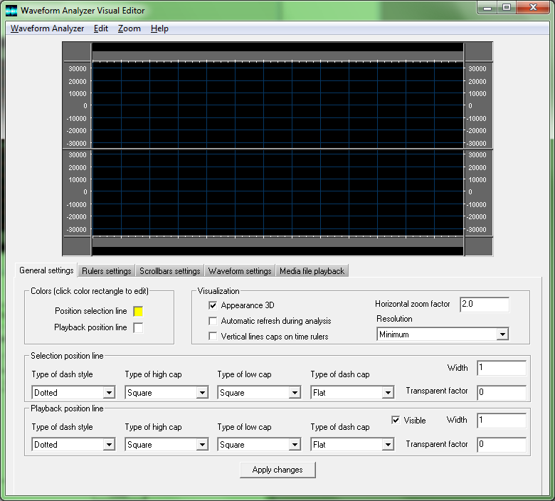 this launches the Waveform Analyzer Visual Editor application that allows changing most of the waveform analyzer settings and check how it would behave at runtime during an eventual playback session: