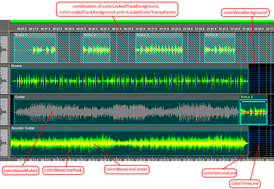 Color used for rendering peaks of the waveform line. This default setting can be modified on a "per item" basis through the TracksBoard.ItemWaveColorsSet method |