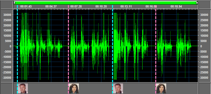 Inside the screenshot below you can see 2 examples of wave ranges, each with its own set of colors. Please note that "wave ranges" are a different concept respect to "waveform selection": you can only have one single "waveform selection", whose positioning can be managed through code or through mouse movement, but you can have multiple "wave ranges" managed through code without any mouse management for changing the positioning.